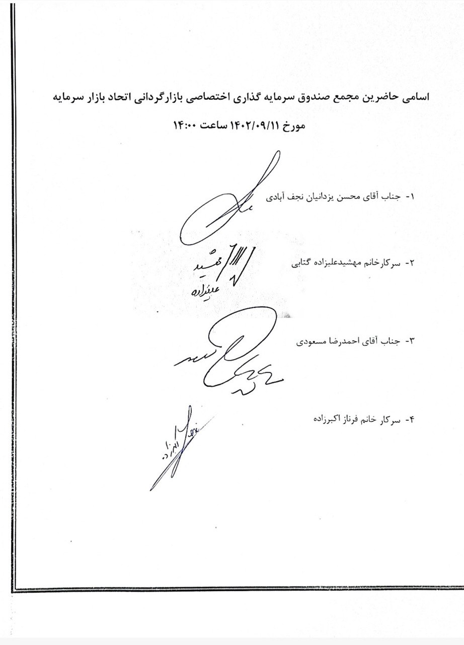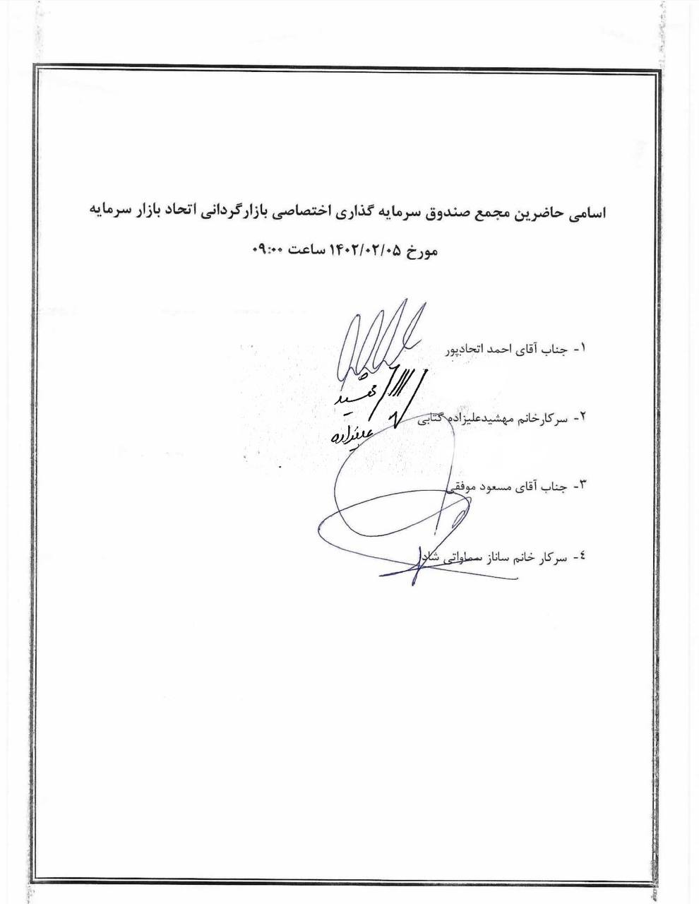 اسامی حاضرین مجمع صندوق سرمایه گذاری اتحاد بازار سرمایه
